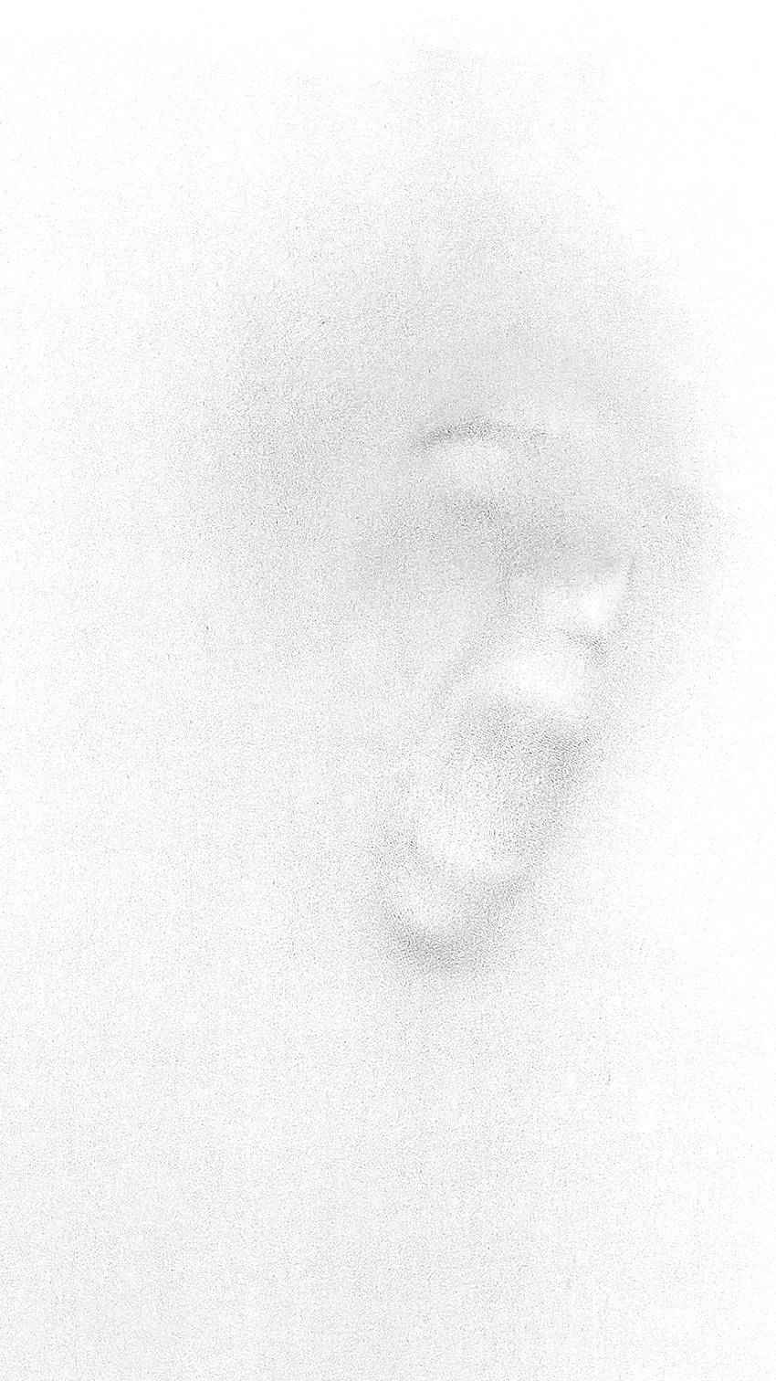 I lose myself in an absurd escapism and, drawing on the song Eisbär (Grauzone, 1981), sing myself into an apathetic trance in a mantra-like manner while staging myself as a wall image. The entire process resembles a desperate act driven by affect. A shoddily stretched frame, the imprint of a face pressing through the fabric appearing detached and ghostlike, the body exposed/vulnerable, a pedestal that is too narrow leading to an unstable stance, a questionable goal and an exhausting path toward it.